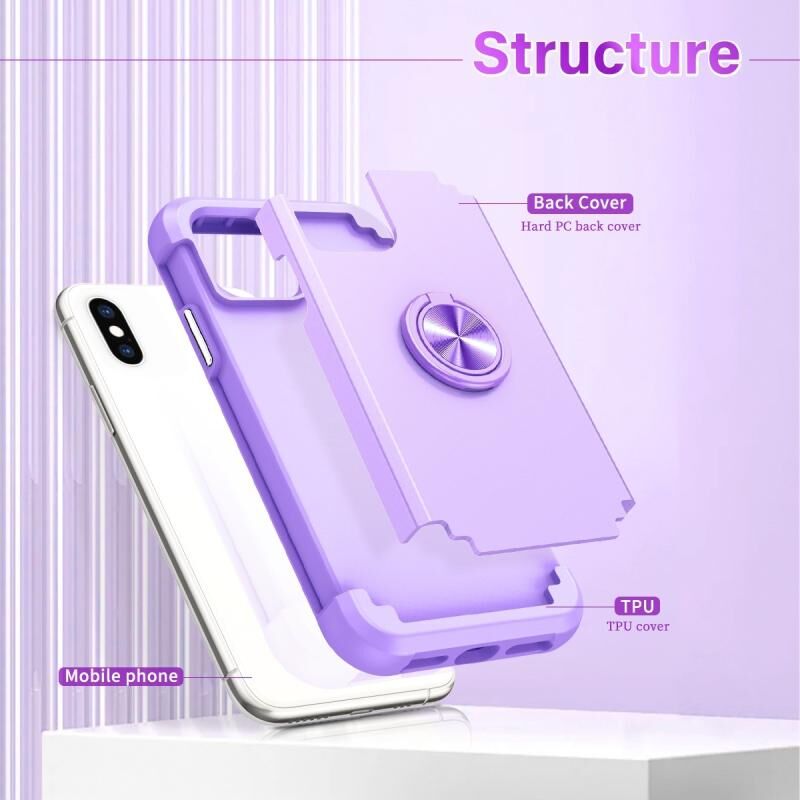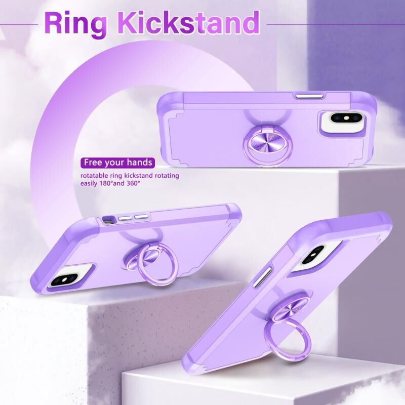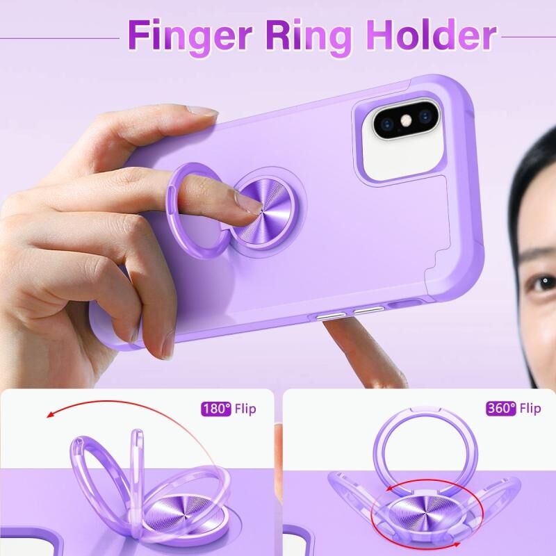 Θήκη τηλεφώνου με περιστρεφόμενη δακτύλιο και μαγνητική βάση για iPhone XR L2 (Ανοιχτό Μωβ)