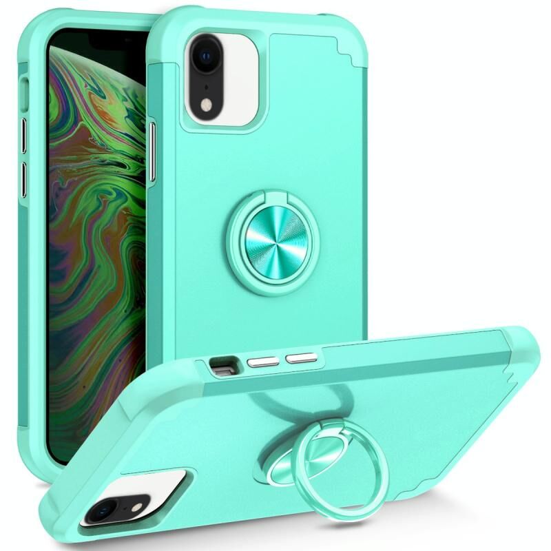 Θήκη τηλεφώνου με περιστρεφόμενη δακτύλιο και μαγνητική βάση για iPhone XR L2 (Μέντα Πράσινο)