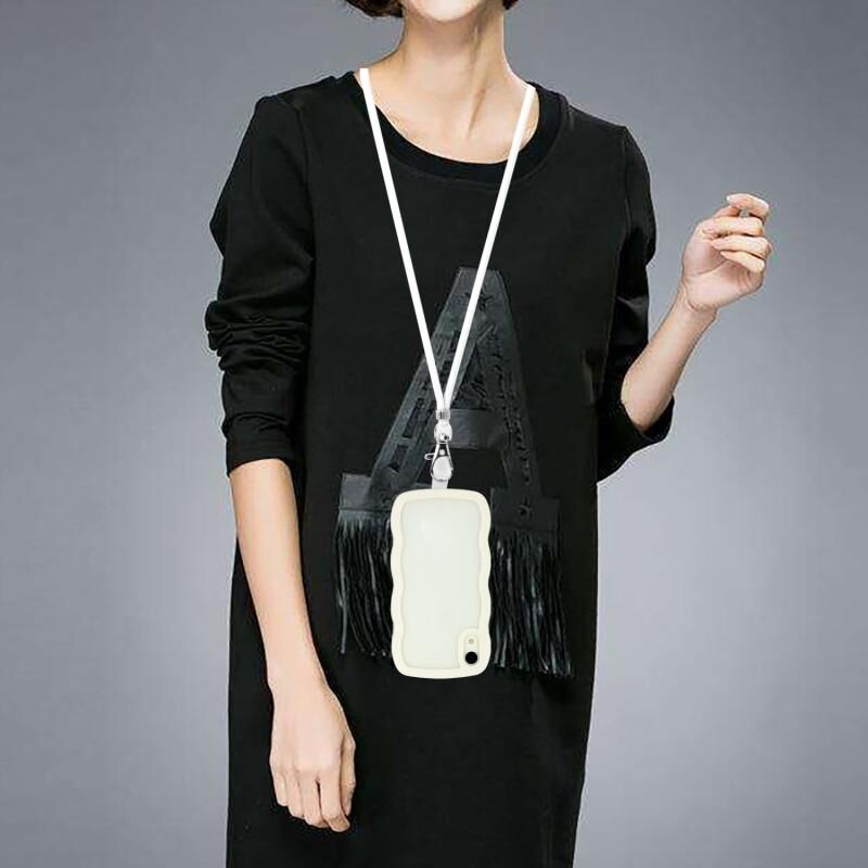 Θήκη τηλεφώνου για iPhone XR με κορδόνι, διαφανές TPU και PC σε χρώμα καραμέλας (Λευκό)