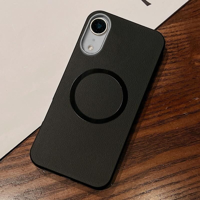 Θήκη τηλεφώνου για iPhone XR με υφή δέρματος, σχεδιασμό MagSafe και πλήρη κάλυψη (Μαύρο)