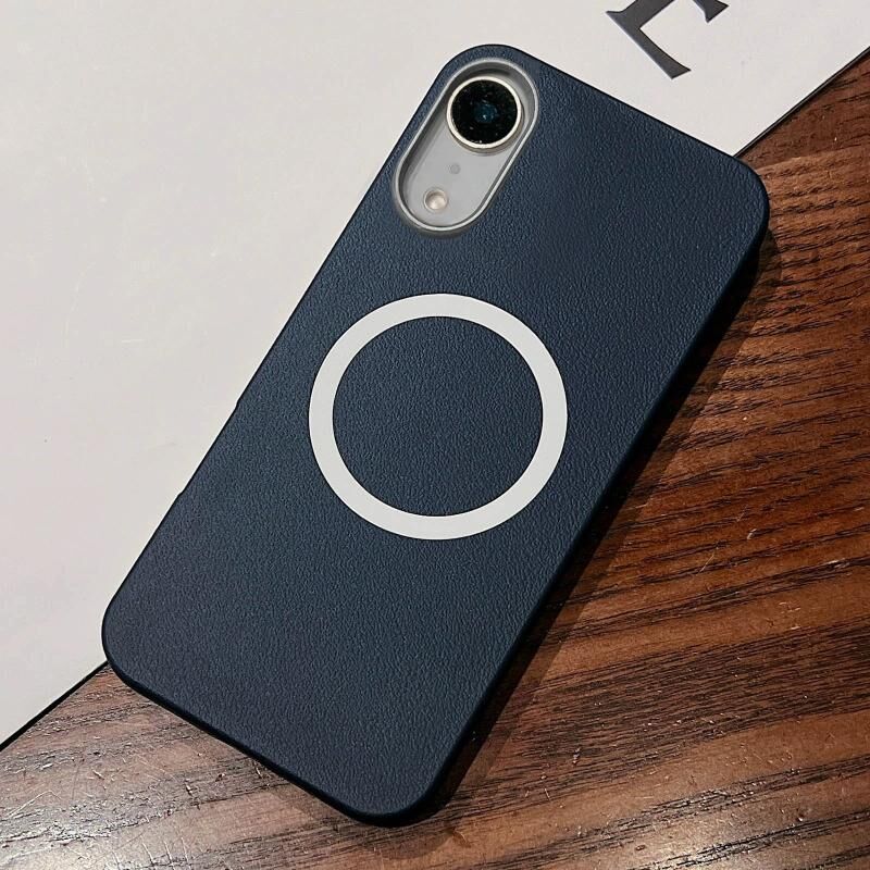 Θήκη τηλεφώνου για iPhone XR με υφή δέρματος, σχεδιασμό MagSafe και πλήρη κάλυψη (Μαύρο)
