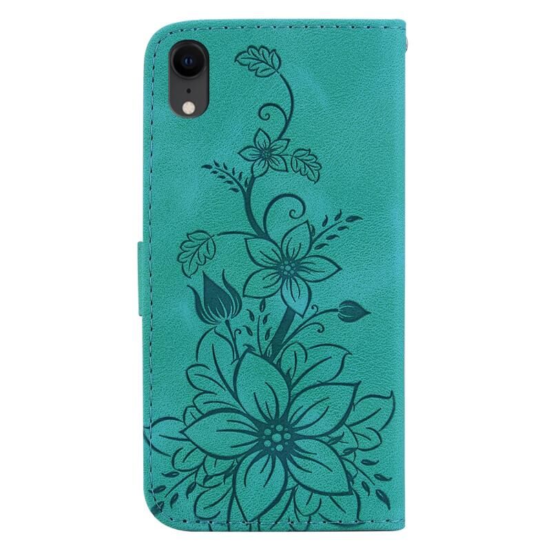 For iPhone XR Lily Embossed Leather Phone Case(Green)