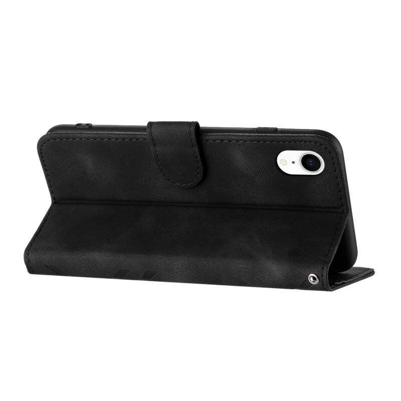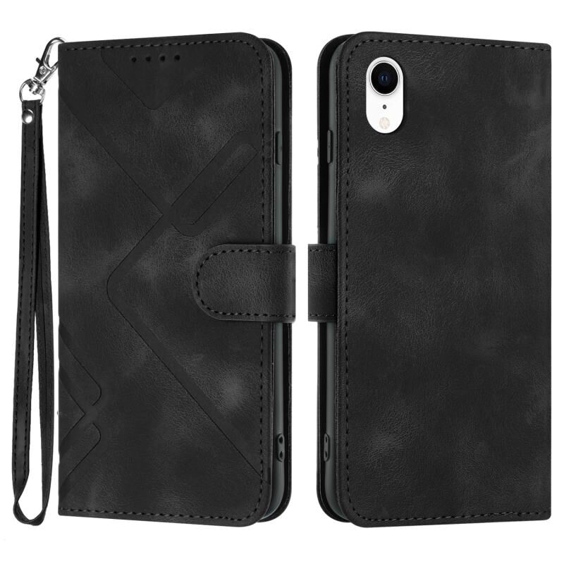 For iPhone XR Line Pattern Skin Feel Leather Phone Case(Black)
