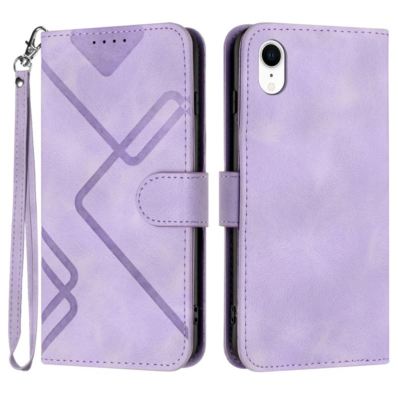 For iPhone XR Line Pattern Skin Feel Leather Phone Case(Light Purple)