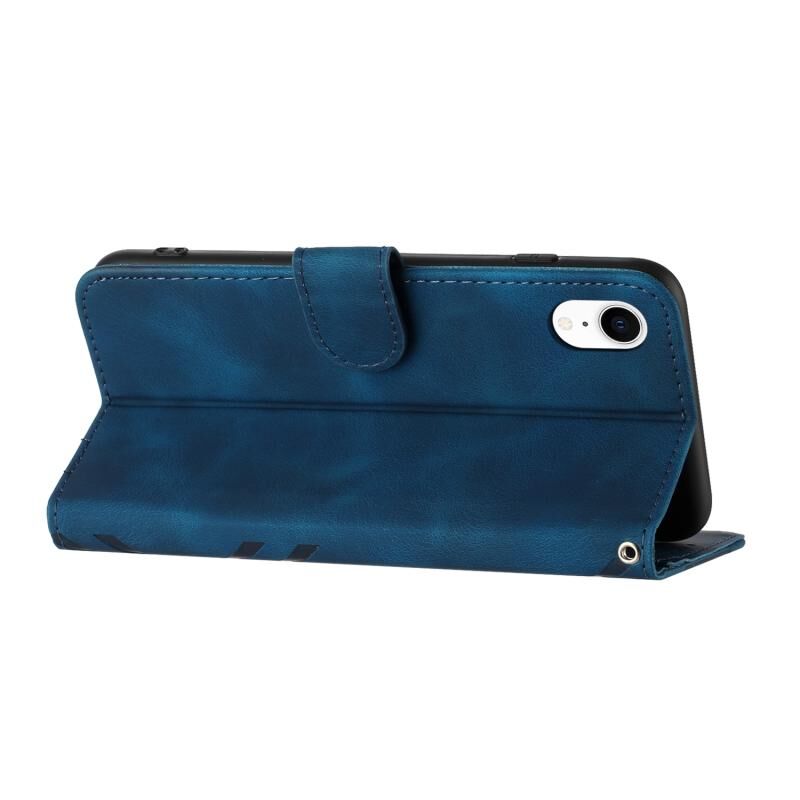 For iPhone XR Line Pattern Skin Feel Leather Phone Case(Royal Blue)