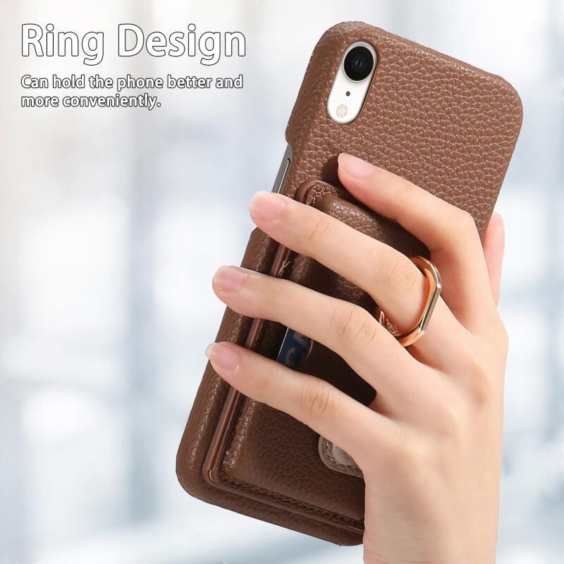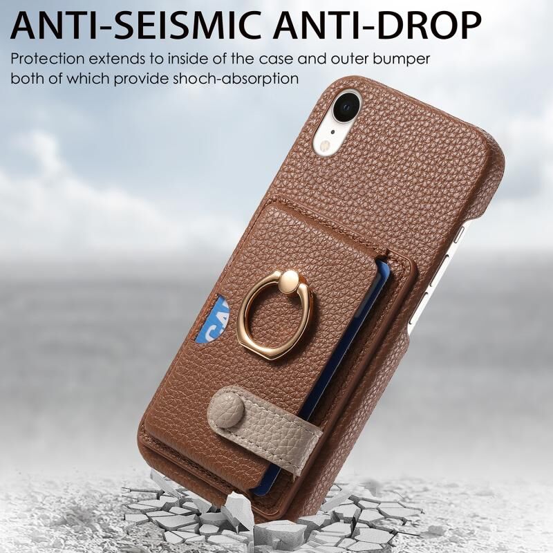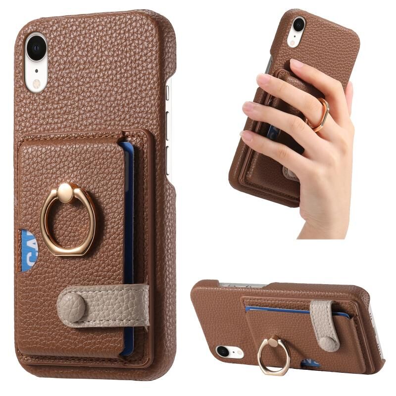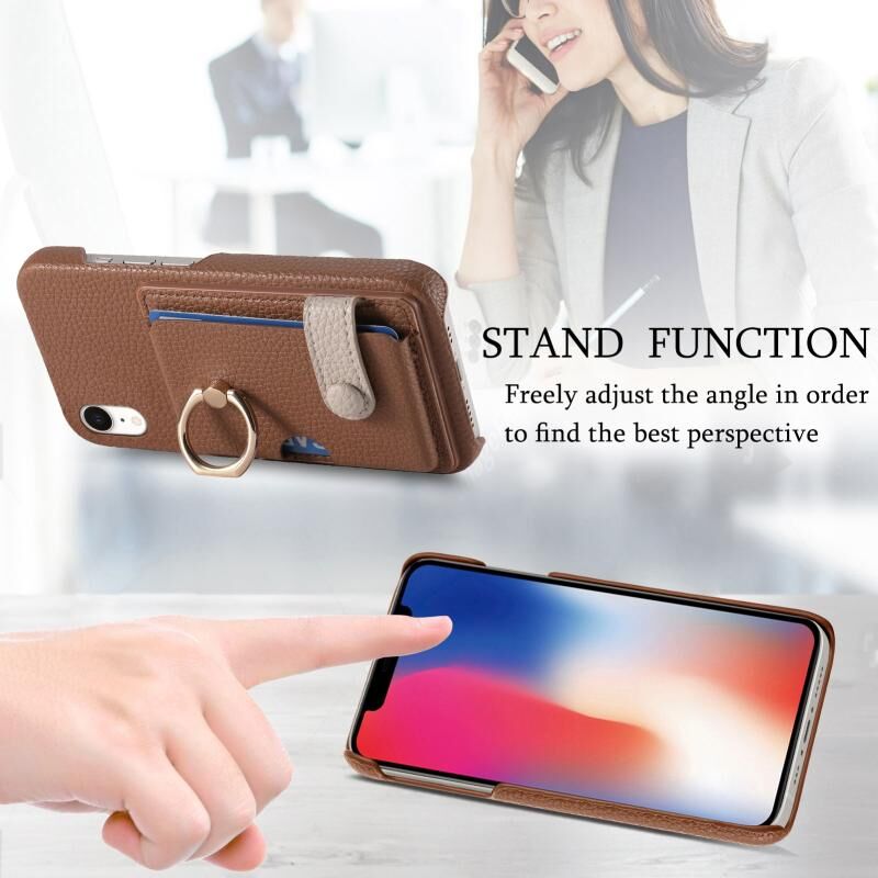 Θήκη τηλεφώνου για iPhone XR από δέρμα Litchi με λεπτή άκρη λαδιού και θήκη κάρτας στην πλάτη (Καφέ)