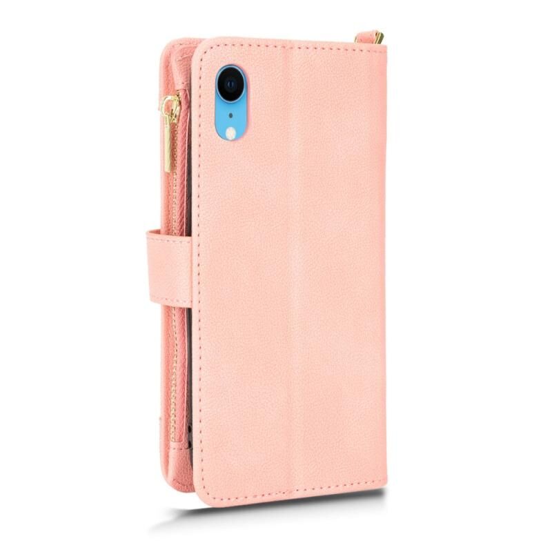 Θήκη τηλεφώνου από δέρμα με υφή λύτσι και φερμουάρ για iPhone XR (Ροζ)