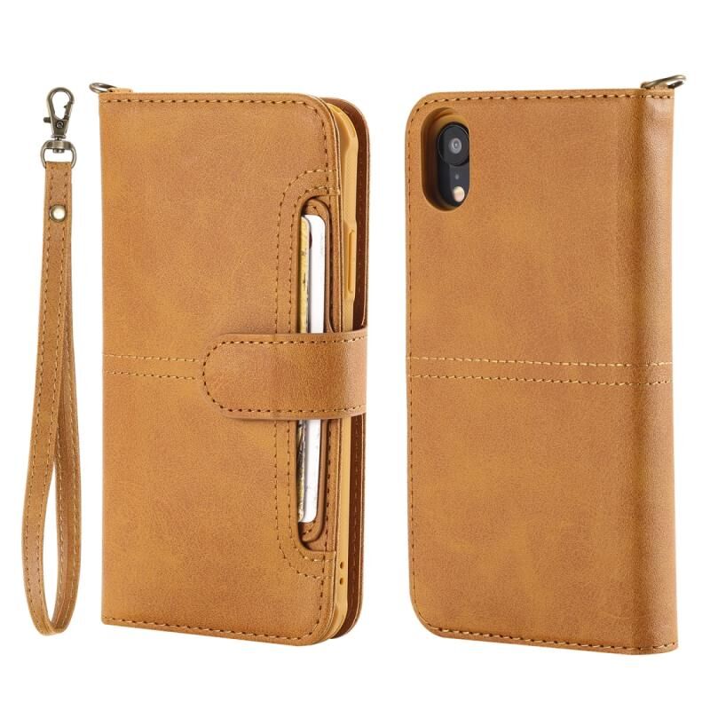 Θήκη δέρματος οριζόντιας αναδίπλωσης με μαγνητικό κούμπωμα, αποσπώμενη, πολυλειτουργική για iPhone XR με θήκες καρτών, βάση στήριξης, πορτοφόλι & κορνίζα φωτογραφιών (Μαύρο)