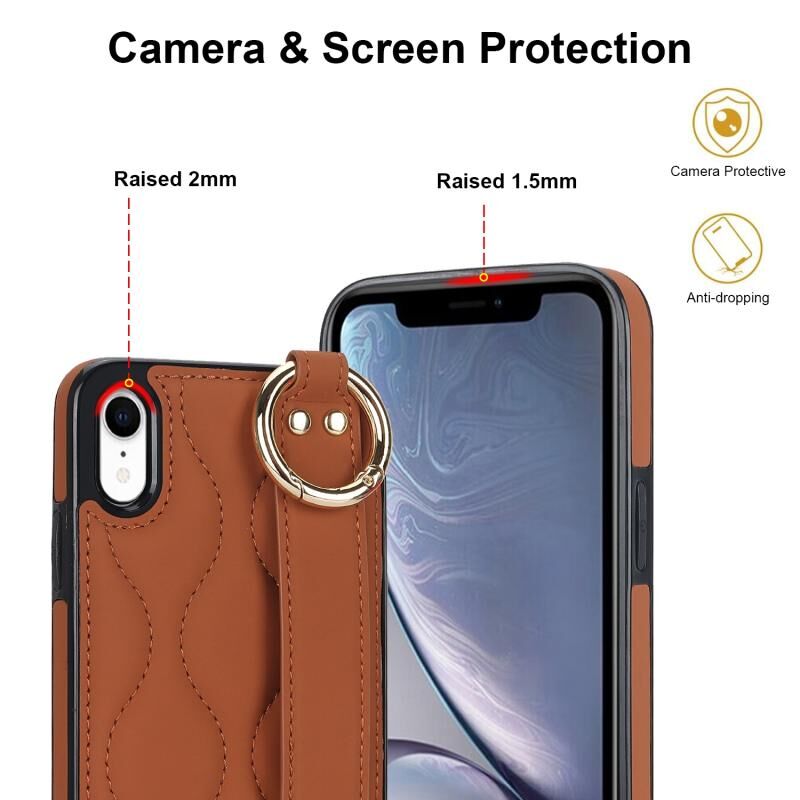 Θήκη τηλεφώνου για iPhone XR, αντιολισθητική, πλήρης κάλυψη, με δακτύλιο και λουρί καρπού (Μαύρο)