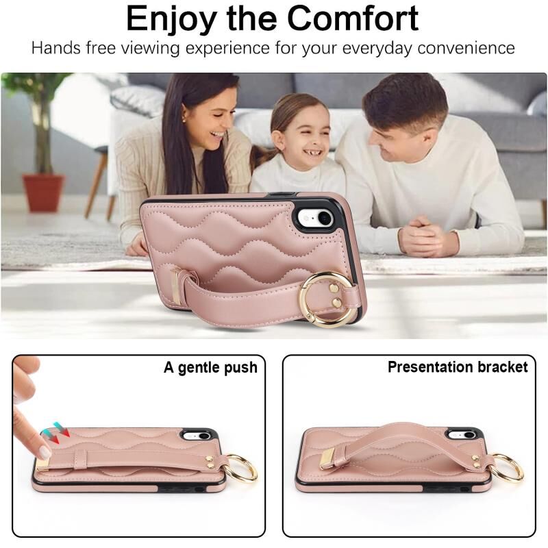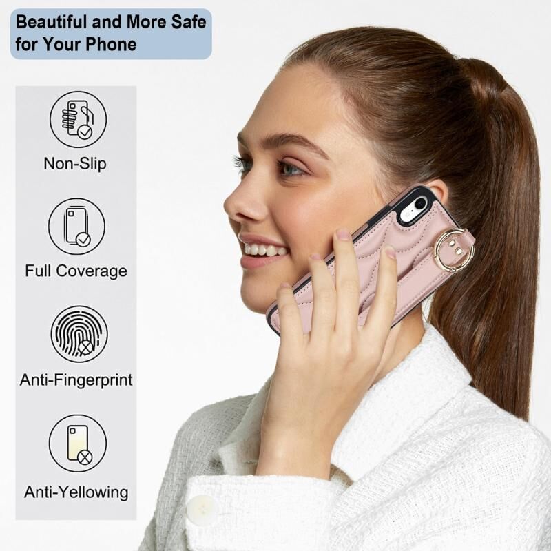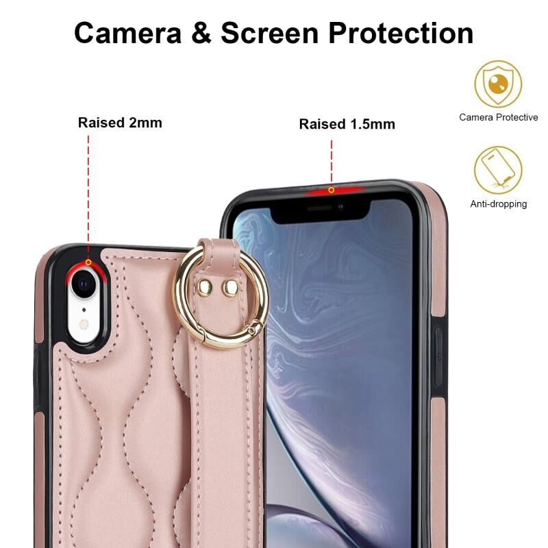 Θήκη τηλεφώνου για iPhone XR, αντιολισθητική, πλήρης κάλυψη, με δακτύλιο και λουρί καρπού (Μαύρο)