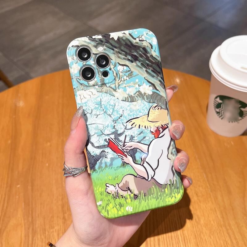 For iPhone XR Oil Painting Pattern Glossy PC Phone Case(Under the Tree)