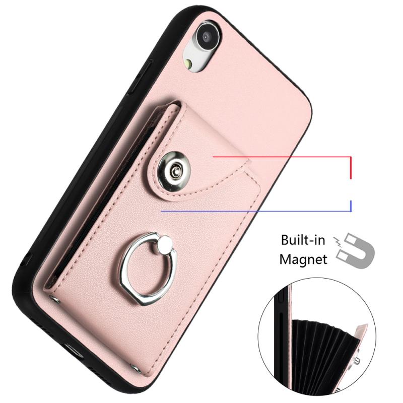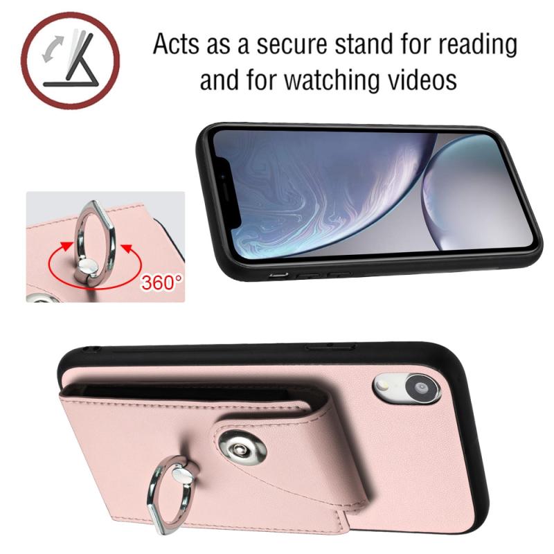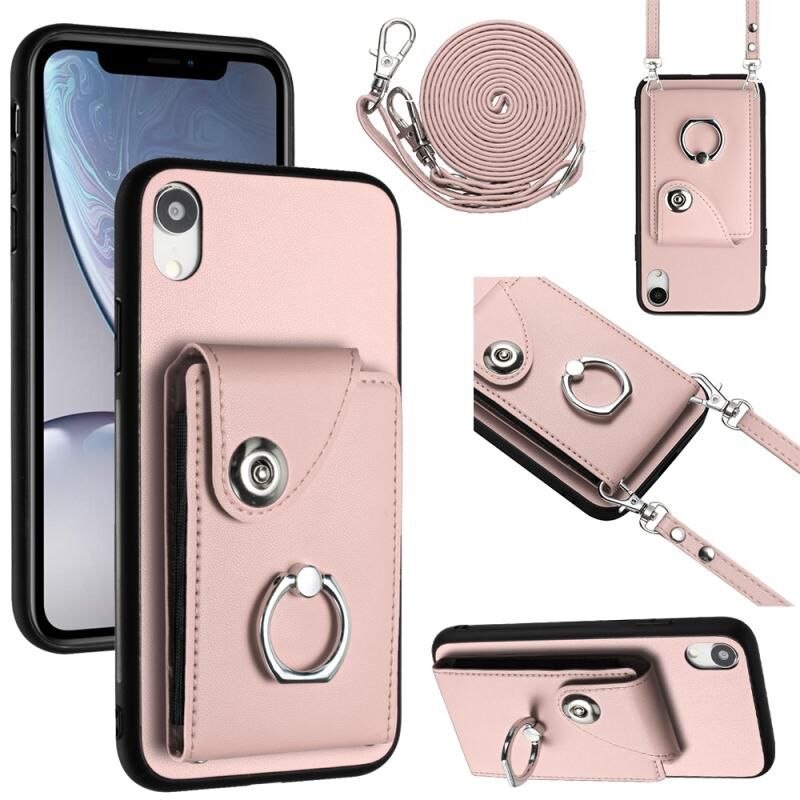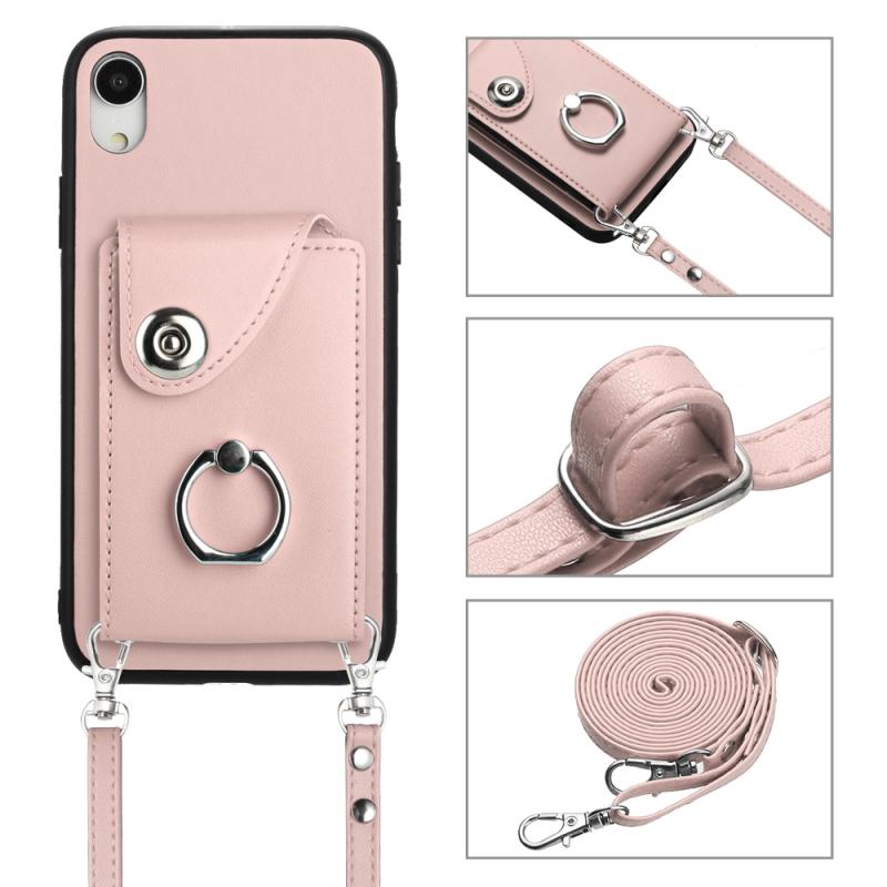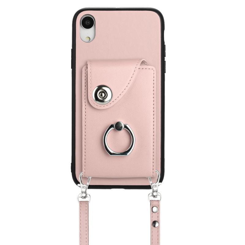For iPhone XR Organ Card Bag Ring Holder Phone Case with Long Lanyard(Pink)