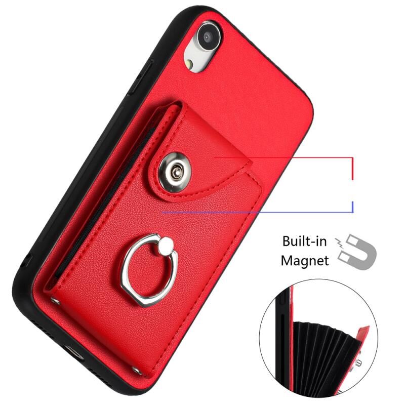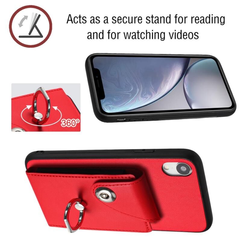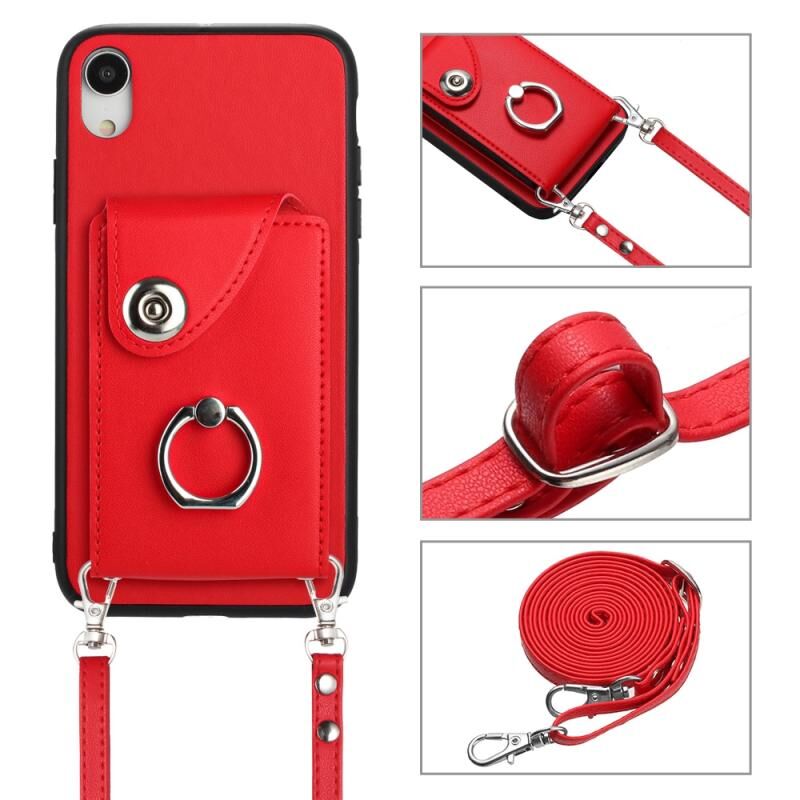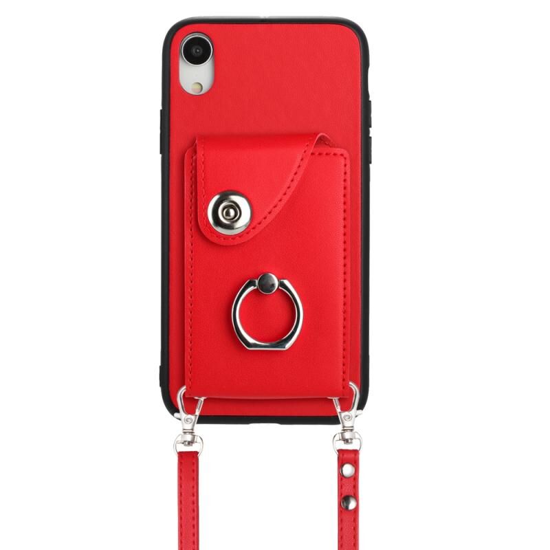 For iPhone XR Organ Card Bag Ring Holder Phone Case with Long Lanyard(Red)