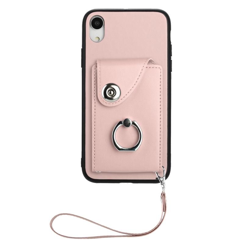 Θήκη τηλεφώνου για iPhone XR με κάρτες, δακτύλιο συγκράτησης και λουρί από PU (Μπλε)