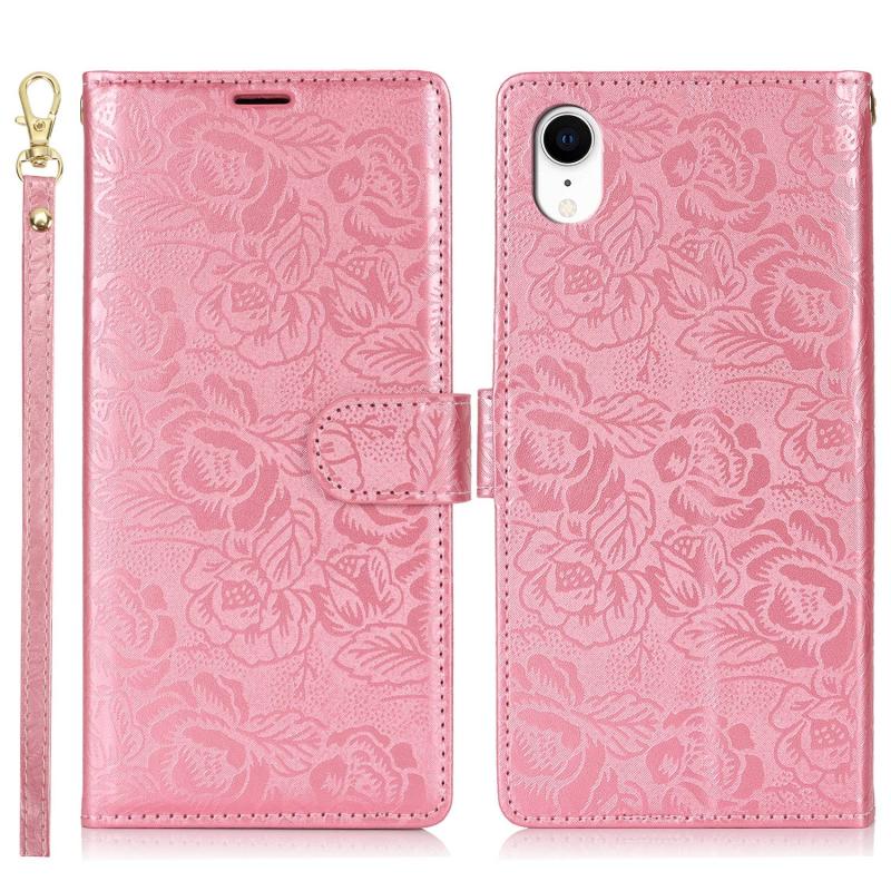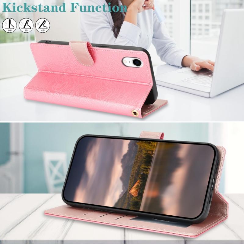 For iPhone XR Peony Flowers Imprint Leather Phone Case(Pink)