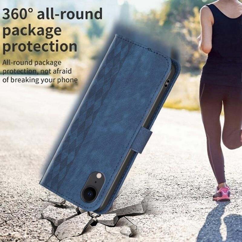 Θήκη τηλεφώνου από δέρμα με ανάγλυφο καρό για iPhone XR (Καφέ)