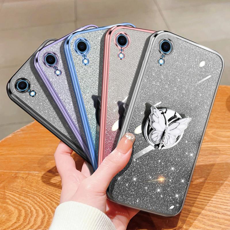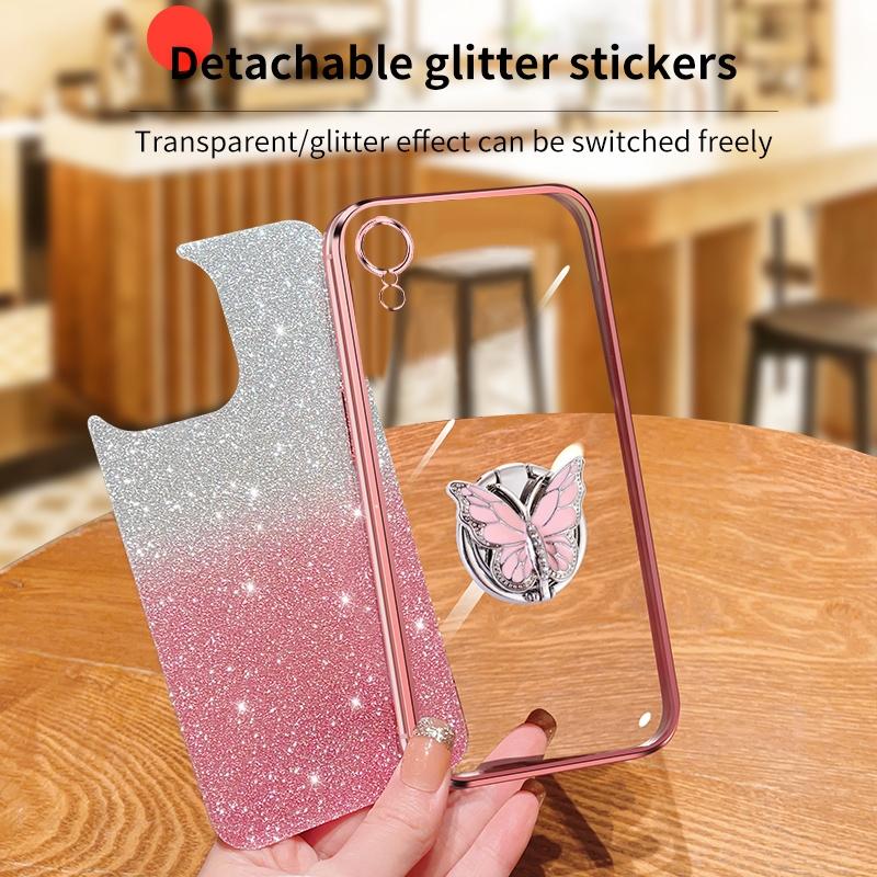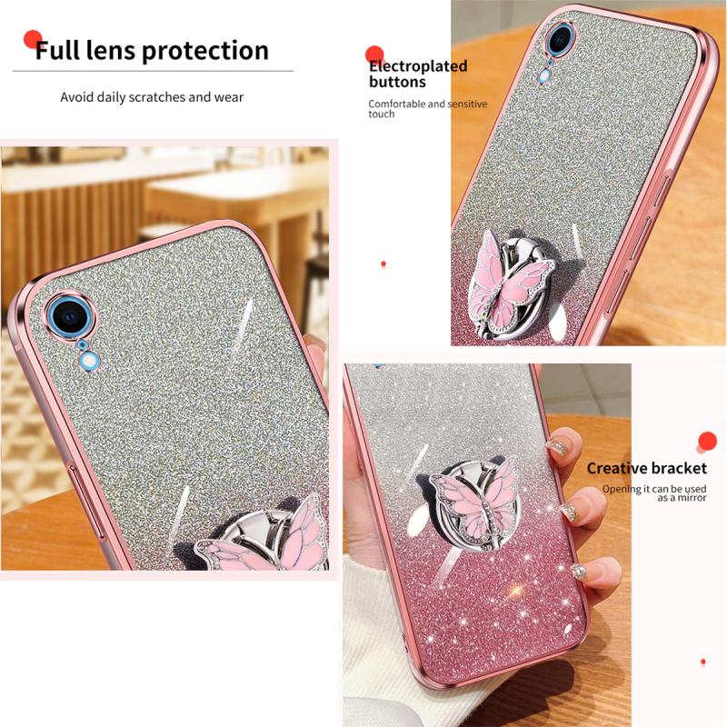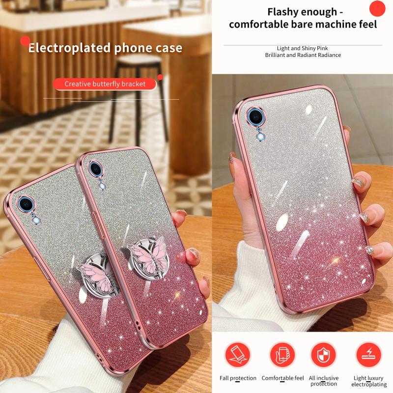 Θήκη τηλεφώνου TPU με επιμετάλλωση, διαβαθμισμένη λάμψη και πεταλούδα για iPhone XR (ρόζ)