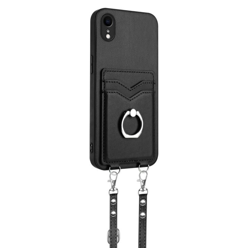 Θήκη τηλεφώνου για iPhone XR R20 με κορδόνι, δακτύλιο και θήκη καρτών (Ροζ)