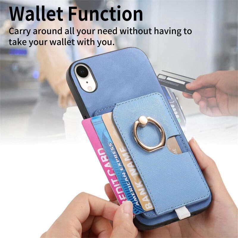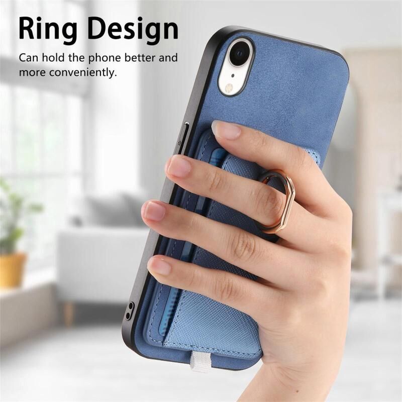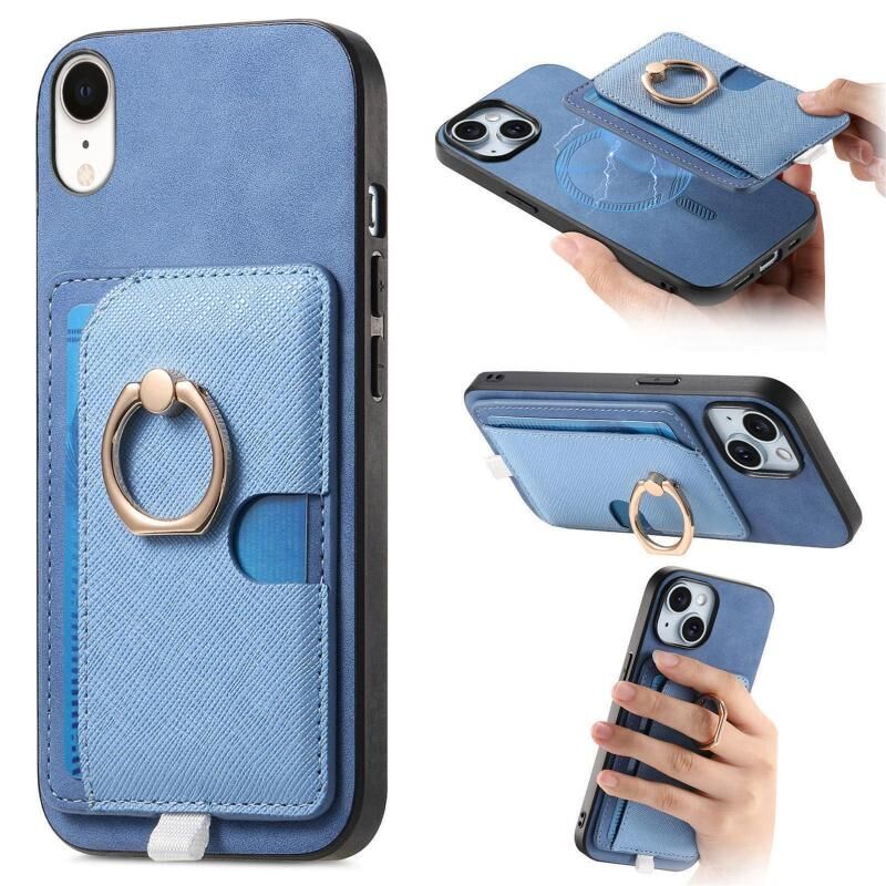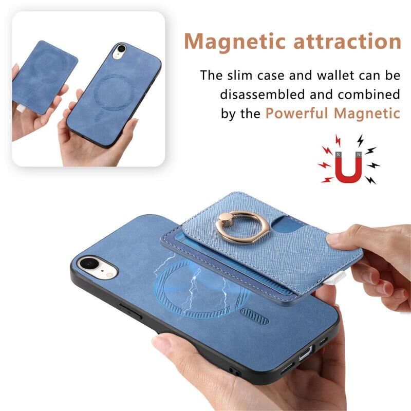 Θήκη τηλεφώνου MagSafe για iPhone XR, Ρετρό Δερμάτινη με Ενσωματωμένη Κάρτα και Δακτύλιο (Κίτρινο)