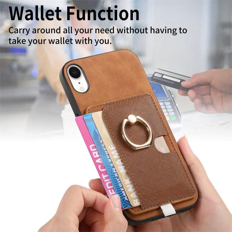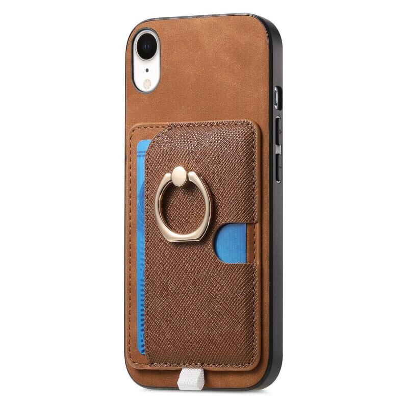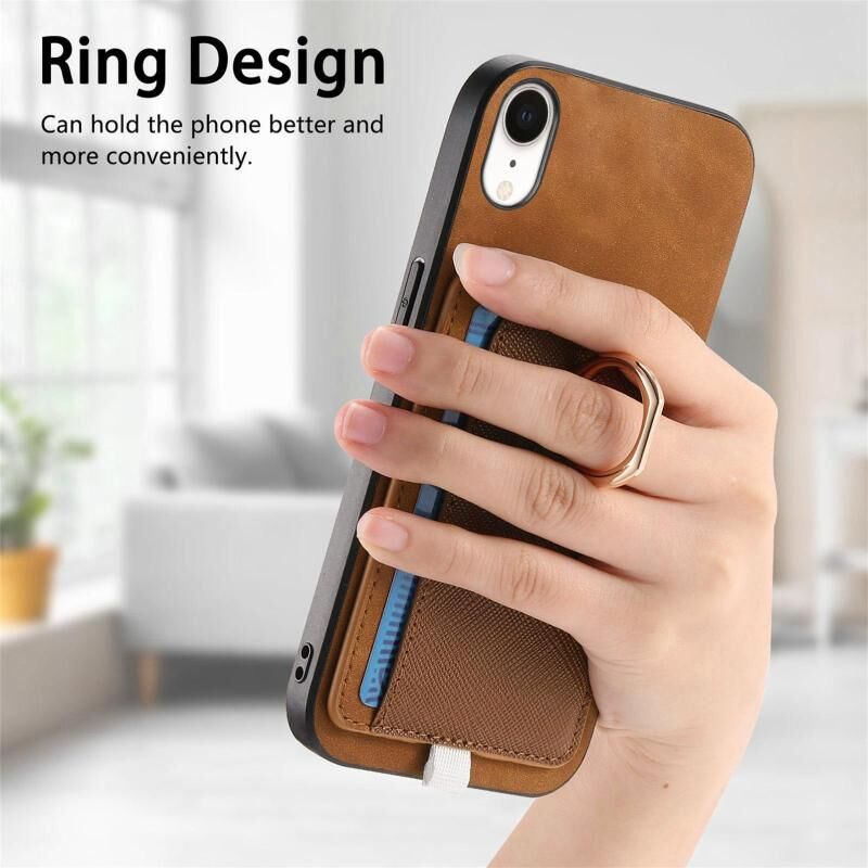 Θήκη τηλεφώνου MagSafe για iPhone XR, Ρετρό Δερμάτινη με Ενσωματωμένη Κάρτα και Δακτύλιο (Κίτρινο)