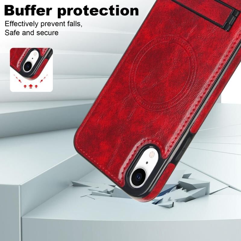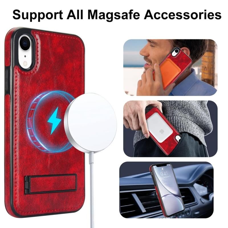 For iPhone XR Retro Leather Invisible Stand MagSafe Phone Case(Red)