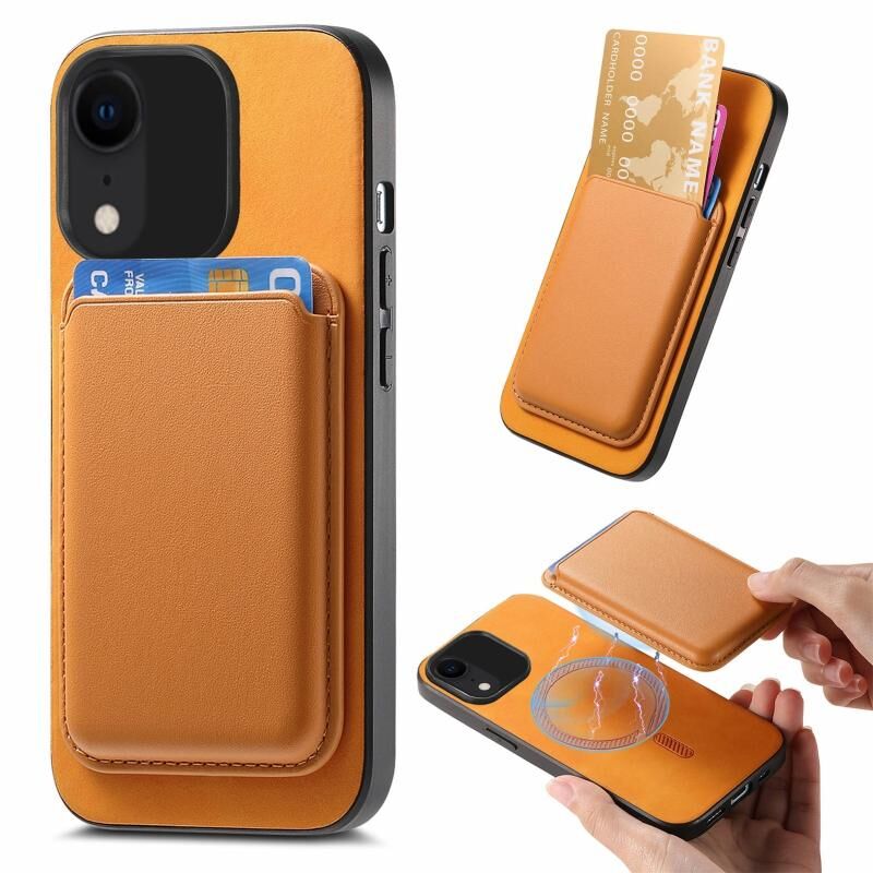 For iPhone XR Retro Magsafe Card Bag PU Back Cover Phone Case(Yellow)