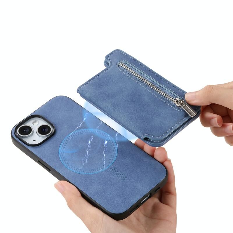 Θήκη κινητού για iPhone XR με ρετρό πορτοφόλι MagSafe και φερμουάρ, για κάρτες (Μπλε)