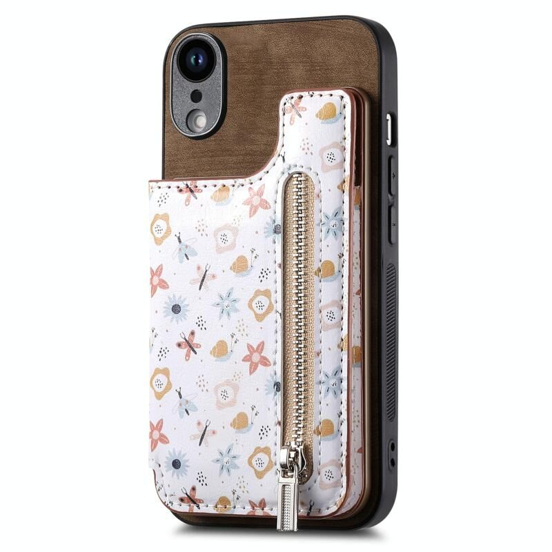 Θήκη κινητού για iPhone XR με σχέδιο retro, ζωγραφισμένη και με πορτοφόλι με φερμουάρ (Ροζ)