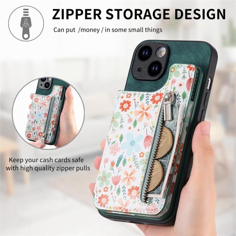 Θήκη κινητού για iPhone XR με σχέδιο retro, ζωγραφισμένη και με πορτοφόλι με φερμουάρ (Ροζ)