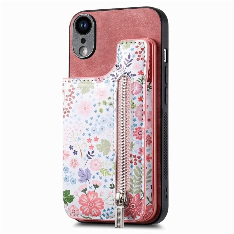Θήκη κινητού για iPhone XR με σχέδιο retro, ζωγραφισμένη και με πορτοφόλι με φερμουάρ (Ροζ)