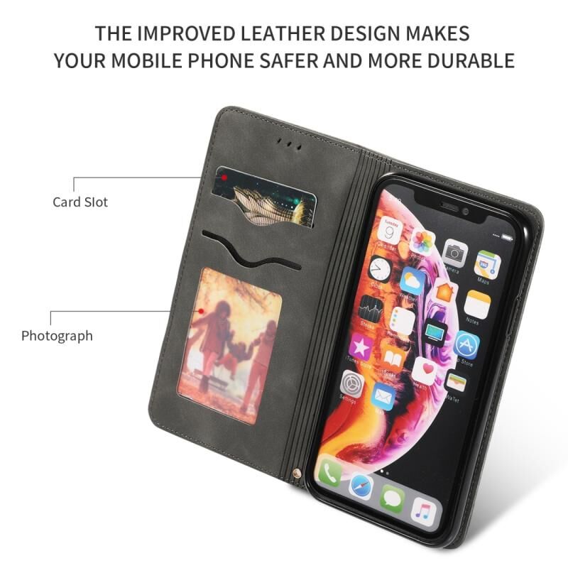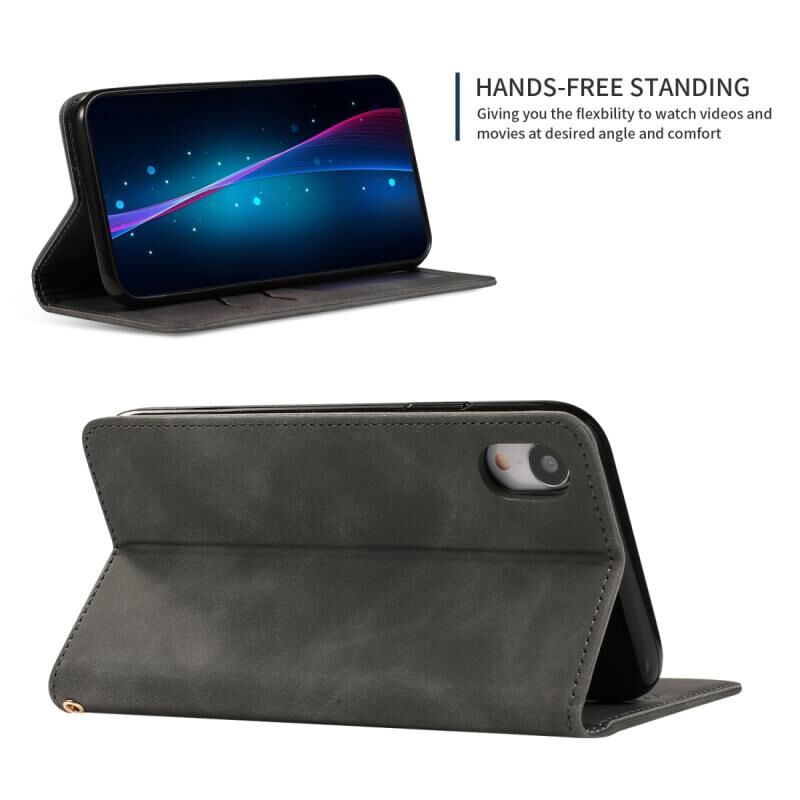 Θήκη για iPhone XR με υφή retro, μαγνητικό κλείσιμο, οριζόντια, δερμάτινη (Στρατιωτικό Πράσινο)