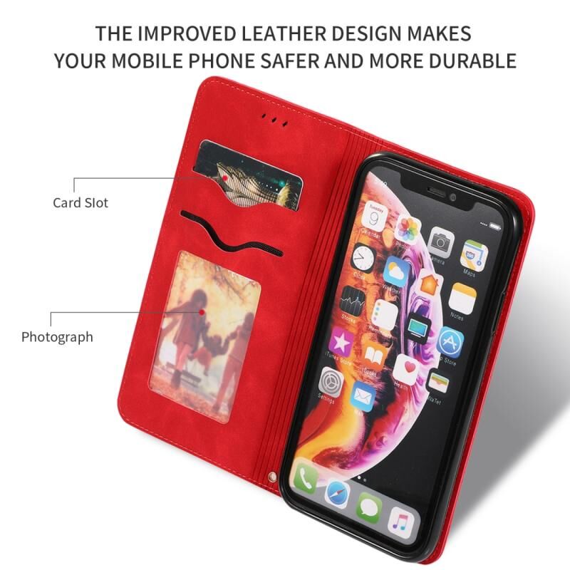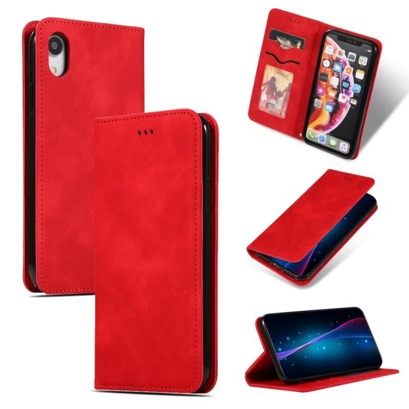 Θήκη για iPhone XR με υφή retro, μαγνητικό κλείσιμο, οριζόντια, δερμάτινη (Στρατιωτικό Πράσινο)