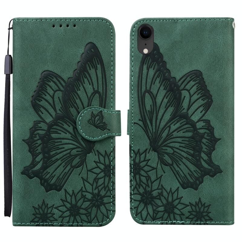 Θήκη για iPhone XR με ανάγλυφο σχέδιο πεταλούδων σε ρετρό δέρμα, οριζόντια, με βάση στήριξης, θήκες για κάρτες και πορτοφόλι (Μπλε)