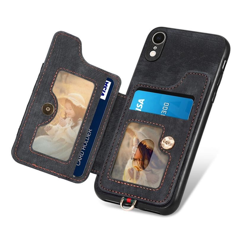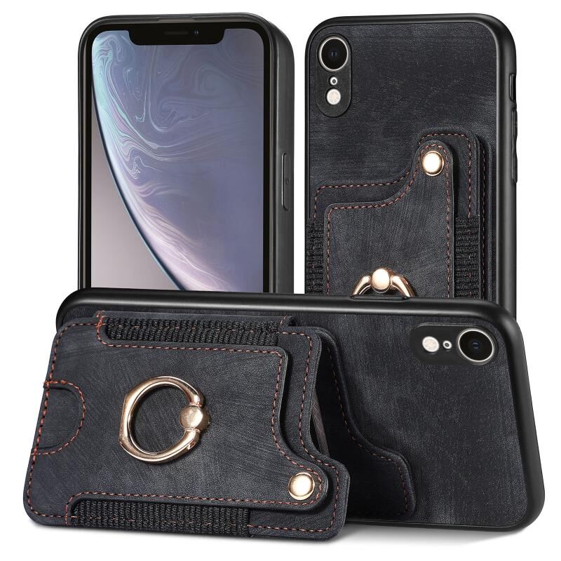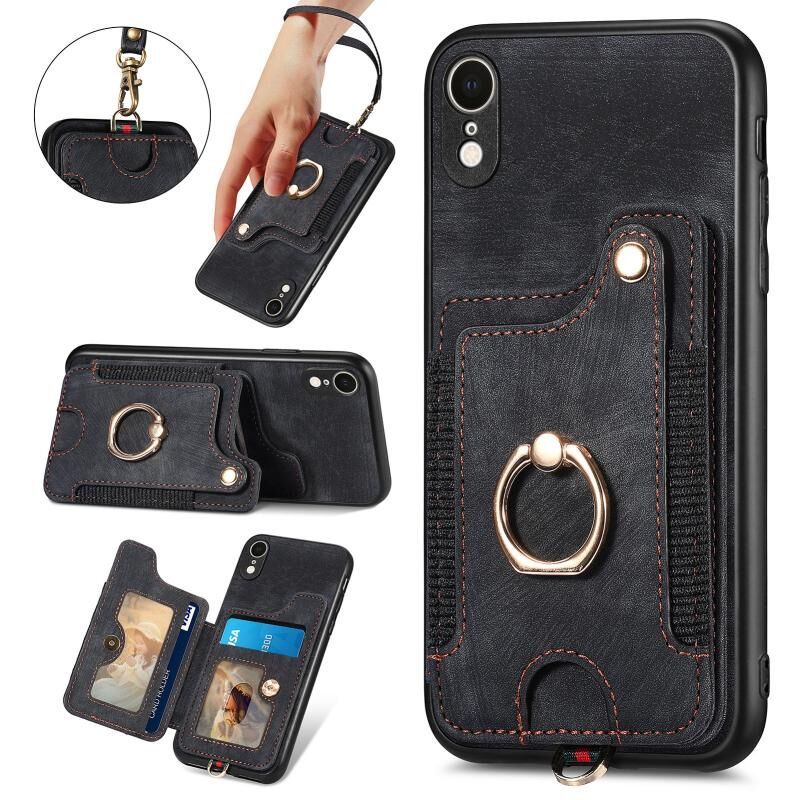 Θήκη τηλεφώνου για iPhone XR με ρετρό υφή, δακτύλιο και πολλαπλές θήκες καρτών (Ροζ)