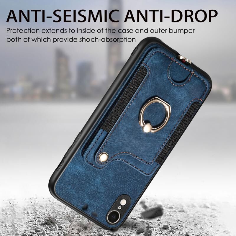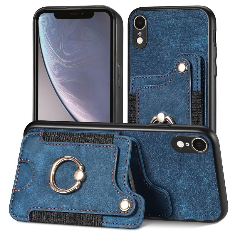 Θήκη τηλεφώνου για iPhone XR με ρετρό υφή, δακτύλιο και πολλαπλές θήκες καρτών (Ροζ)