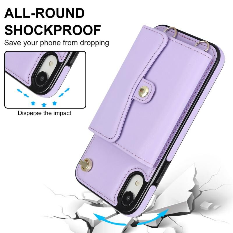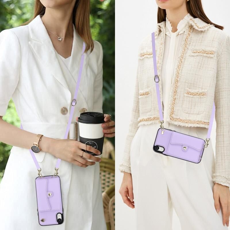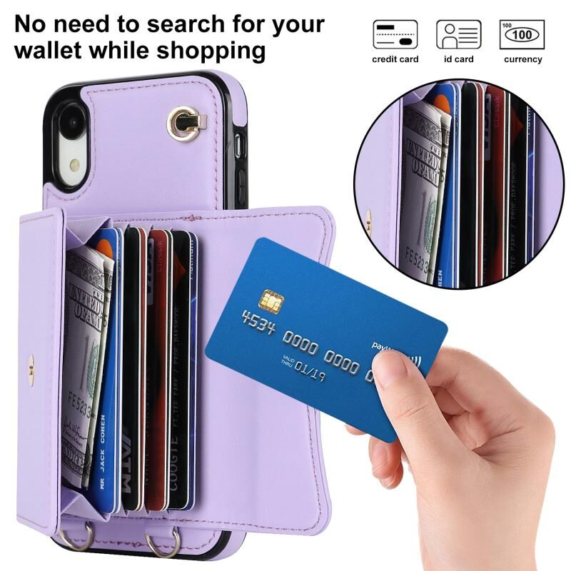 Θήκη τηλεφώνου για iPhone XR με υποδοχή κάρτας RFID και μακρύ κορδόνι (Μαύρο)