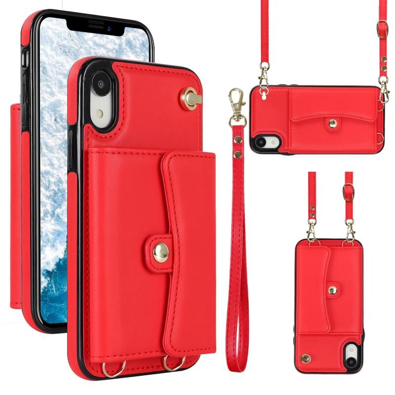 Θήκη τηλεφώνου για iPhone XR με υποδοχή κάρτας RFID και μακρύ κορδόνι (Μαύρο)