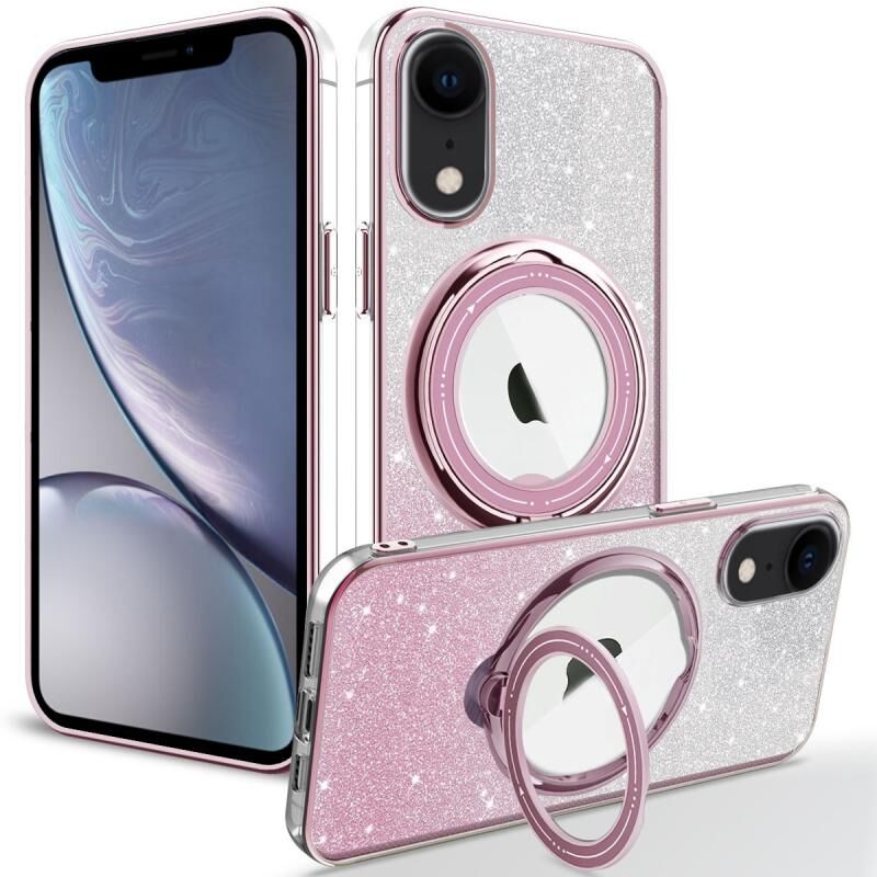 Θήκη τηλεφώνου για iPhone XR με περιστρεφόμενη βάση MagSafe, διαφανές TPU με λαμπερό ντεγκραντέ (Μωβ της Νύχτας)