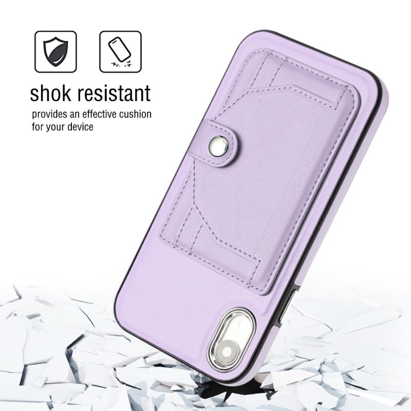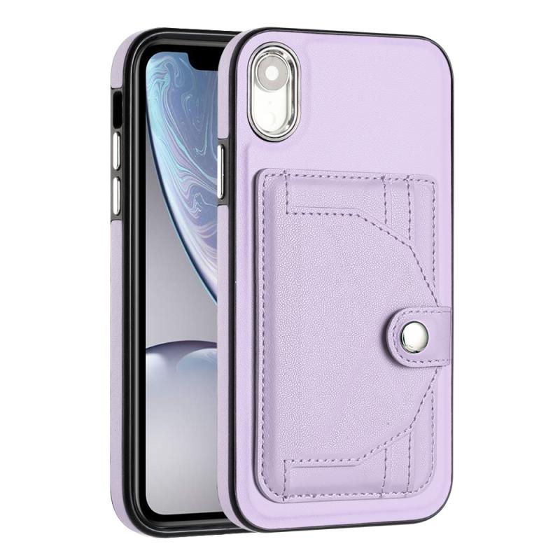 For iPhone XR Shockproof Leather Phone Case with Card Holder(Purple)