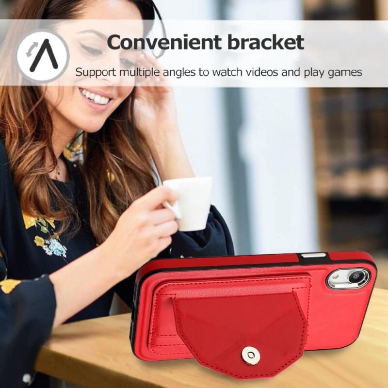 Θήκη για iPhone XR ανθεκτική στις κρούσεις από δέρμα με θήκη για κάρτες (Κόκκινο)