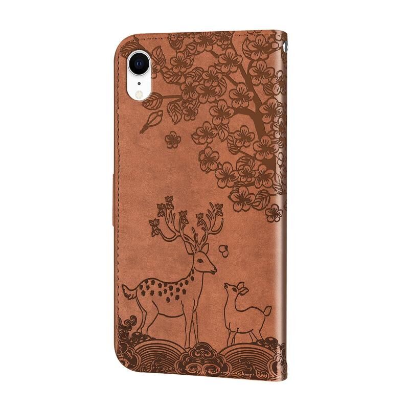 Θήκη για iPhone XR με ανάγλυφο σχέδιο ελαφιού Sika, οριζόντια, από δερματίνη PU με βάση στήριξης & θήκη για κάρτες & πορτοφόλι & κορνίζα φωτογραφίας (Κόκκινο)
