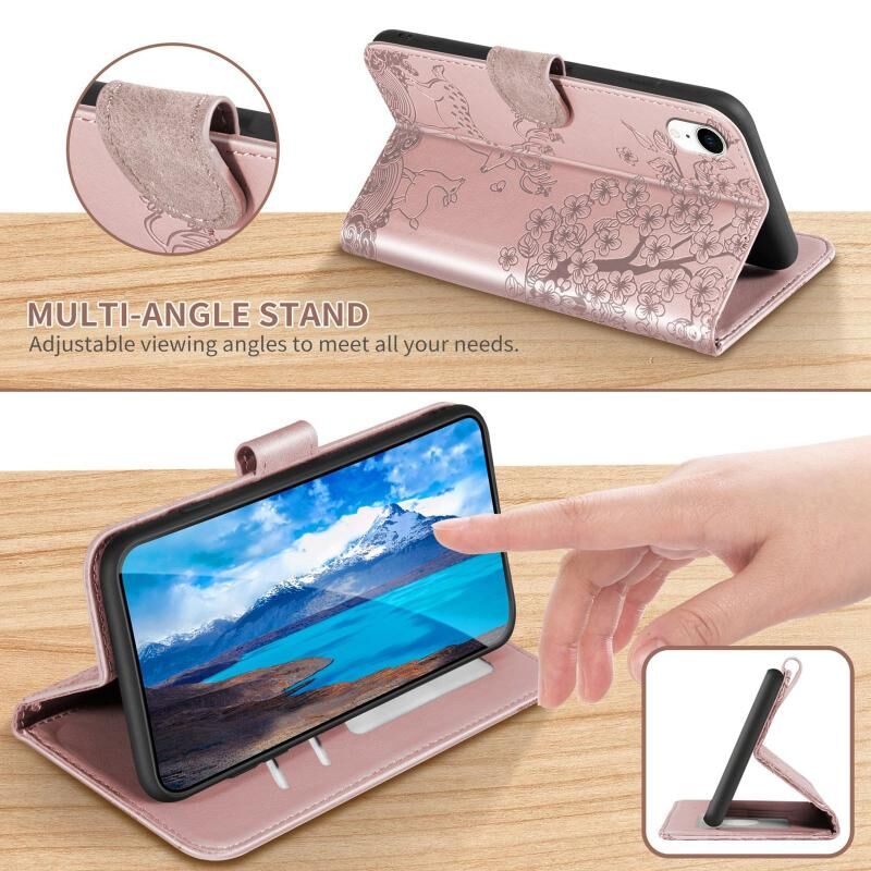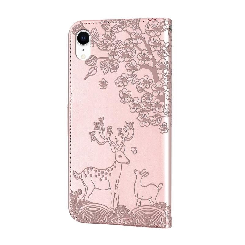 Θήκη για iPhone XR με ανάγλυφο σχέδιο ελαφιού Sika, οριζόντια, από δερματίνη PU με βάση στήριξης & θήκη για κάρτες & πορτοφόλι & κορνίζα φωτογραφίας (Κόκκινο)
