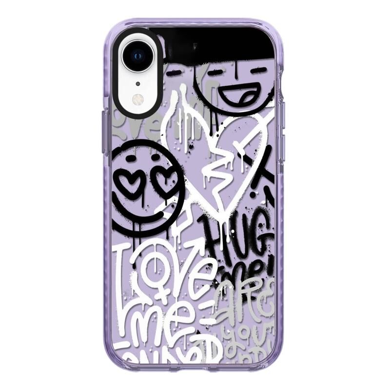 Θήκη τηλεφώνου πλήρους κάλυψης για iPhone XR με απλό εικονογραφημένο σχέδιο (Γράμματα Γκράφιτι Β)