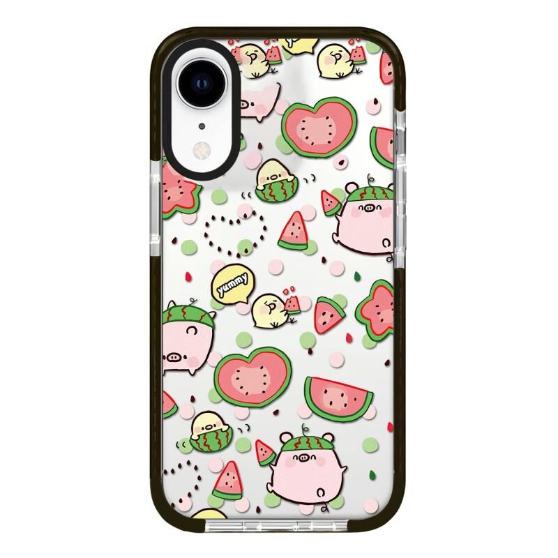 For iPhone XR Simple Illustration Pattern Full Coverage Phone Case(Watermelon Pig)