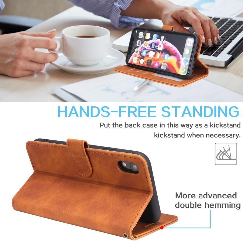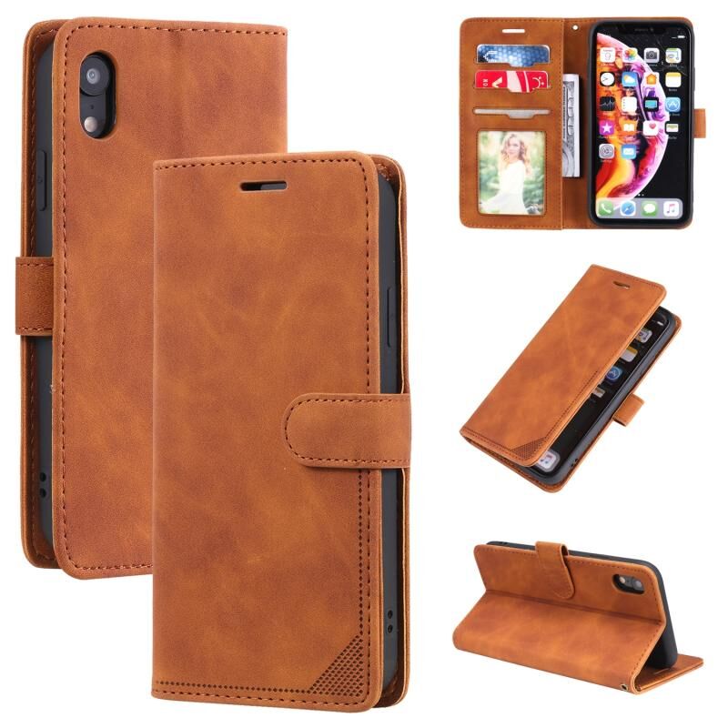 Θήκη τηλεφώνου δέρμα τύπου flip οριζόντια με αίσθηση αφής, αντι-κλοπής για iPhone XR (Καφέ)