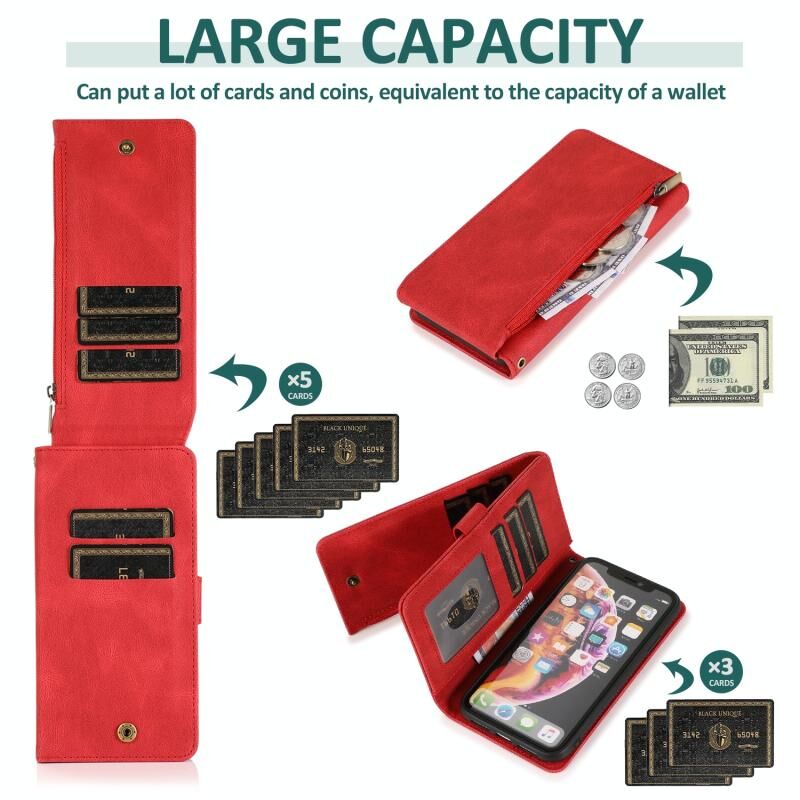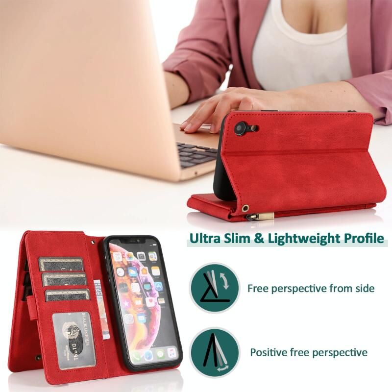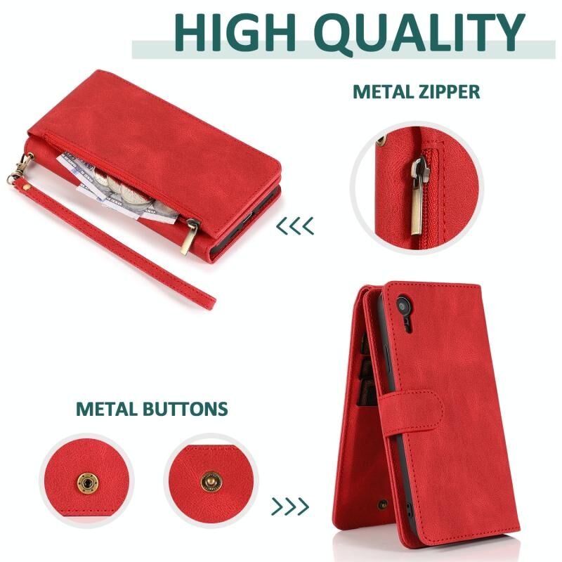 For iPhone XR Skin-feel Crazy Horse Texture Zipper Wallet Bag Horizontal Flip Leather Case with Holder & Card Slots & Wallet & Lanyard(Red)