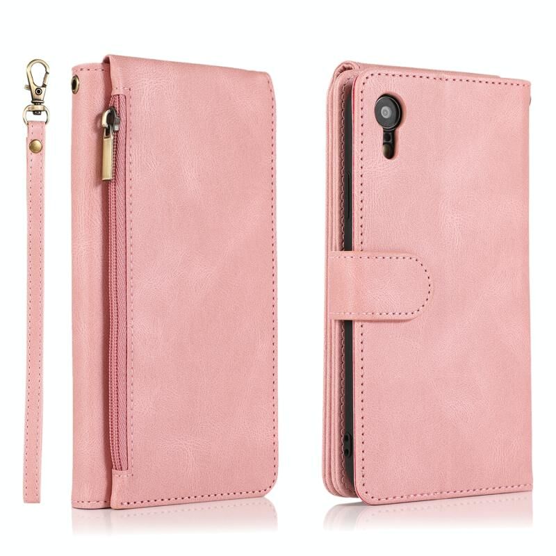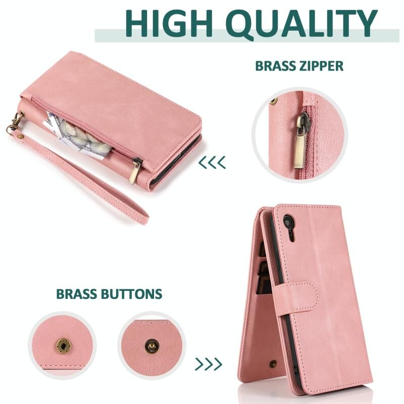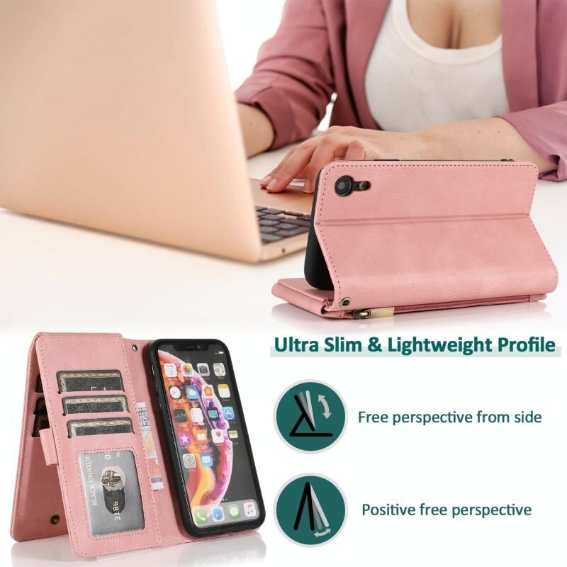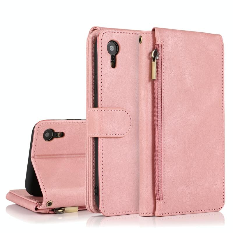 For iPhone XR Skin-feel Crazy Horse Texture Zipper Wallet Bag Horizontal Flip Leather Case with Holder & Card Slots & Wallet & Lanyard(Rose Gold)