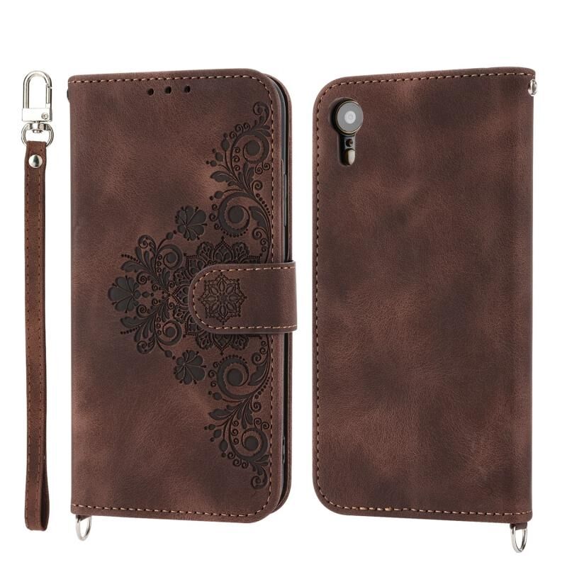 Θήκη τηλεφώνου από δέρμα με ανάγλυφα λουλούδια και αίσθηση δέρματος για iPhone XR (Μαύρο)