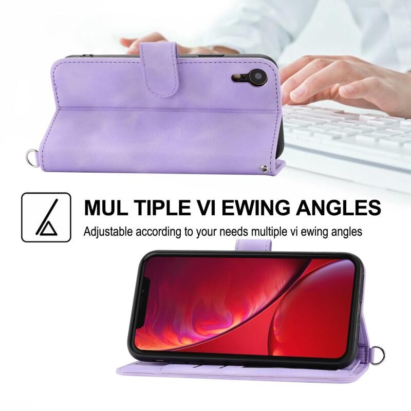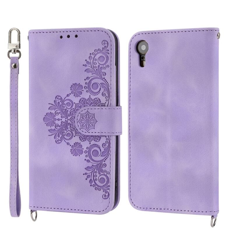 Θήκη τηλεφώνου από δέρμα με ανάγλυφα λουλούδια και αίσθηση δέρματος για iPhone XR (Μαύρο)