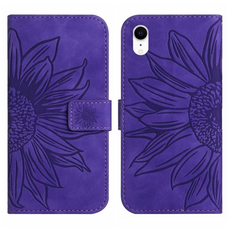 Θήκη τηλεφώνου από δέρμα με σχέδιο ηλιοτρόπιου και αίσθηση δέρματος για iPhone XR, με λουρί (Κόκκινο)